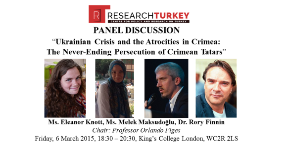 We are pleased to announce Centre for Policy and Research on Turkey (Research Turkey)’s public conference entitled “Ukrainian Crisis and the Atrocities in Crimea: The Never-Ending Persecution of Crimean Tatars” in which Dr. Rory Finnin, Ms. Eleanor Knott and Ms. Melek Maksudoğlu will give talks. This event will take place on Friday, 6 March 2015 between 6:30p.m. and 8:30p.m. at S-1.06, Lecture Theatre, Strand Campus, King’s College London, WC2R 2LS. Professor Orlando Figes, Professor of History, Birkbeck College, University of London will kindly chair the event.